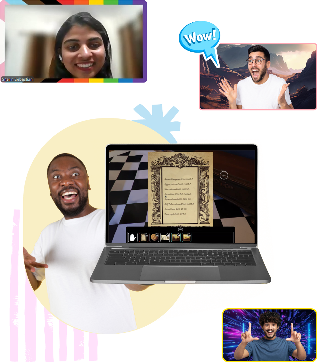 Our virtual escape rooms typically accommodate teams of up to 8 players, so everyone can actively participate in solving challenges. For larger groups, you can divide participants into multiple teams, allowing them to compete against each other in separate breakout rooms.