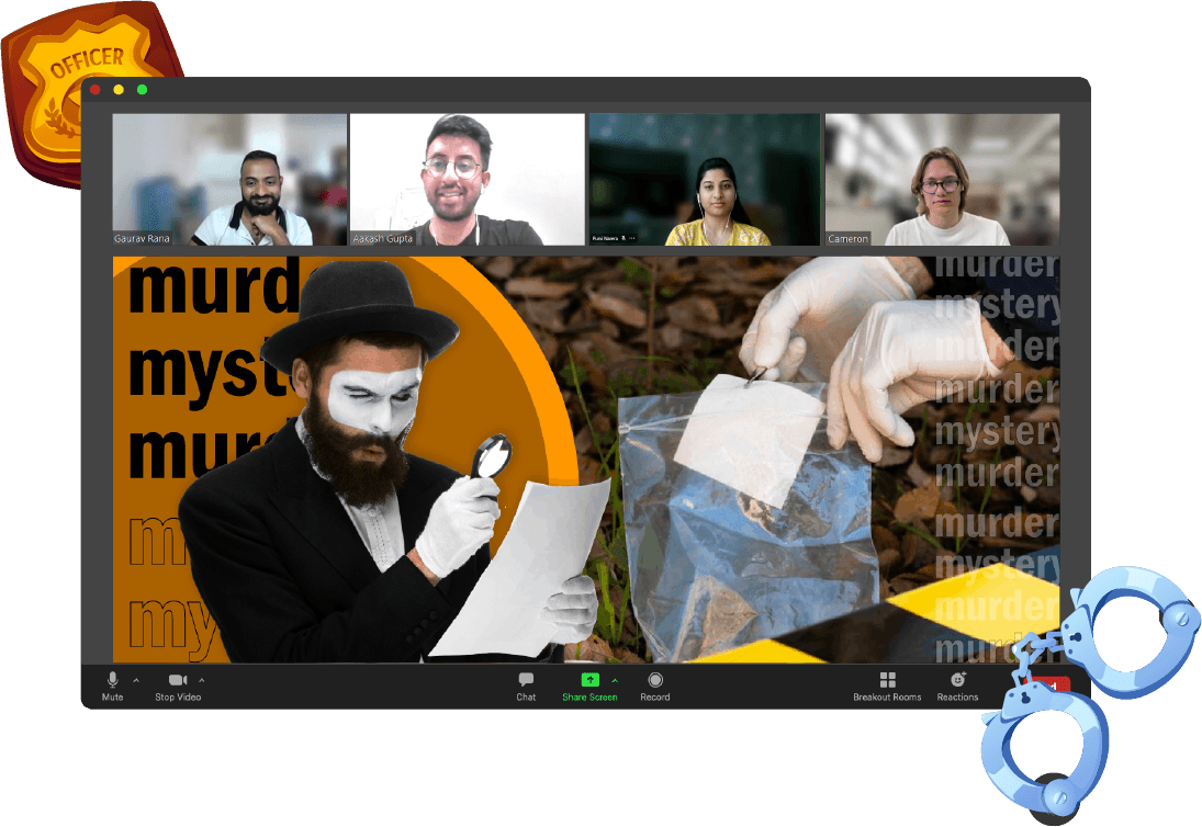 A Virtual murder mystery team building event is typically hosted by experts. They give participants a brief overview of the storyline and run through general house rules once they join the session. They are then sent to random breakout rooms to interrogate the suspects and solve the case. The team that uncovers the culprit’s identity first is declared the winner.