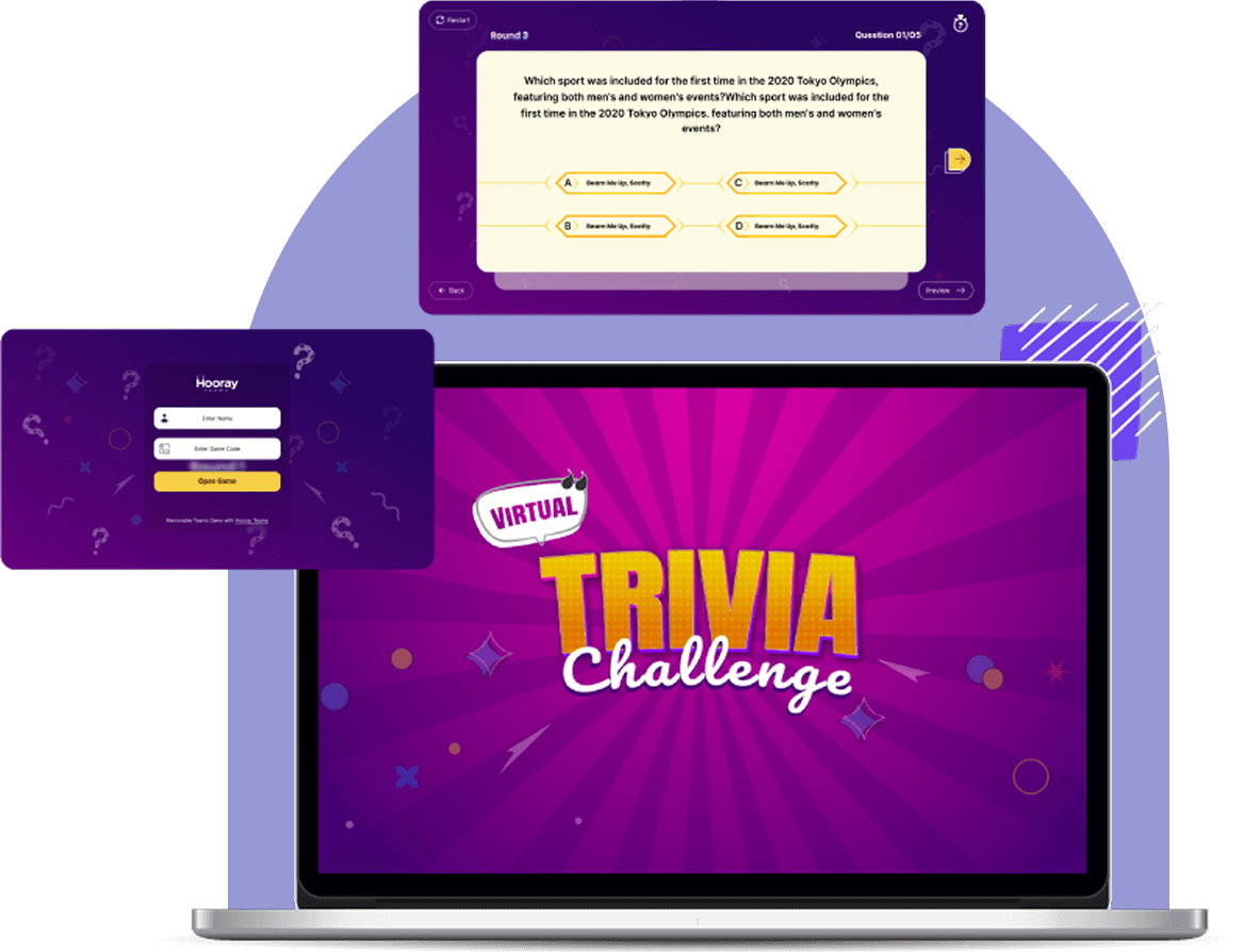 Our intuitive platform guides you through setup, making it easy to get started in minutes. Choose from our pre-built trivia templates or customize your own questions to tailor the experience to your team's interests.